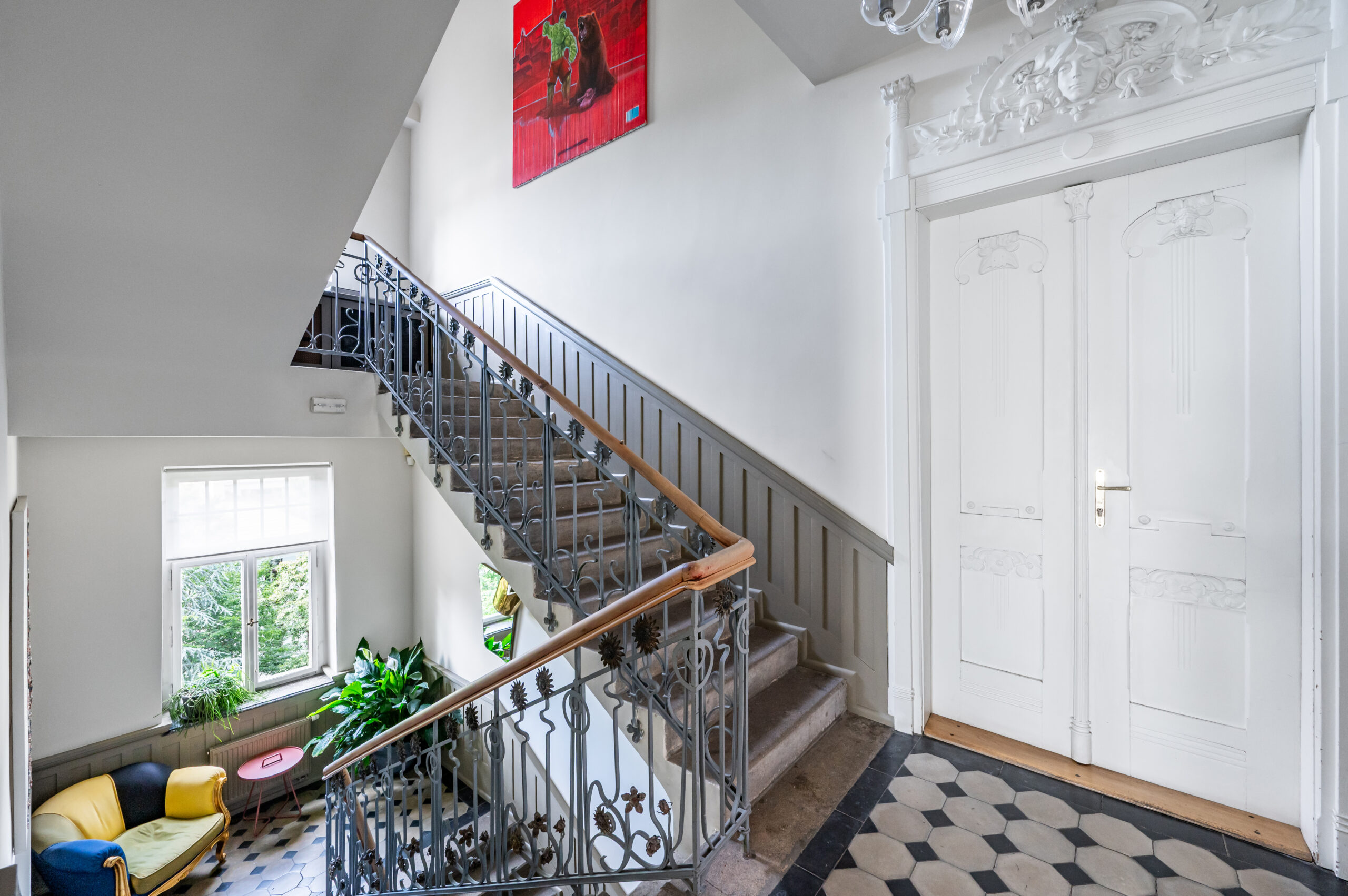 Nestled within a private plot, the villa’s garden offers a serene escape surrounded by mature trees, manicured greenery, and artistic landscaping in harmony with the villa’s Art Nouveau character. Thoughtfully designed for both beauty and privacy, the garden features tranquil seating areas and a decorative water element, creating an ideal setting for quiet reflection or elegant outdoor gatherings.